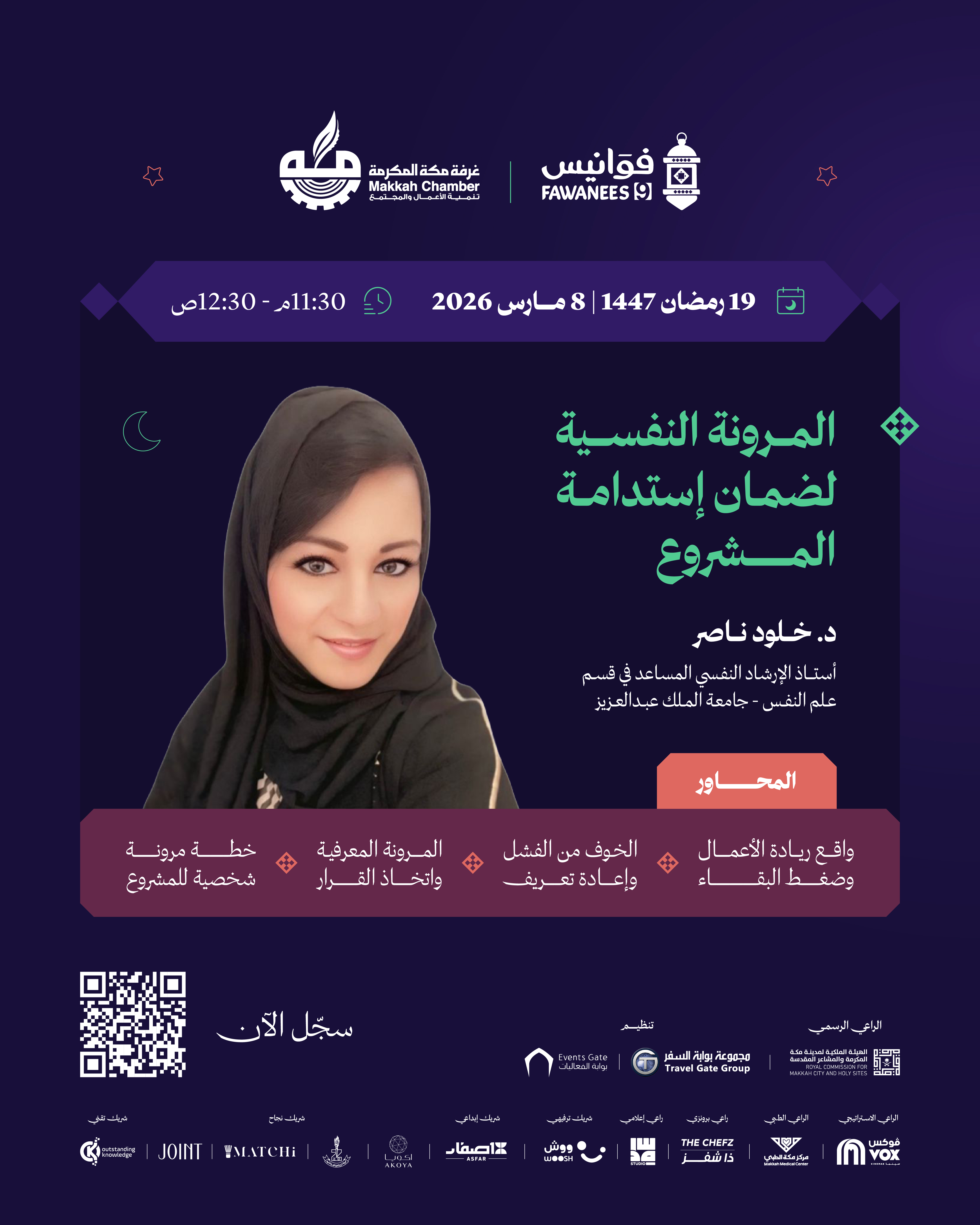 * واقع ريادة الأعمال وضغط البقاء * الخوف من الفشل وإعادة تعريف * المرونة المعرفية واتخاذ القرار * خطة مرونة شخصية للمشروع